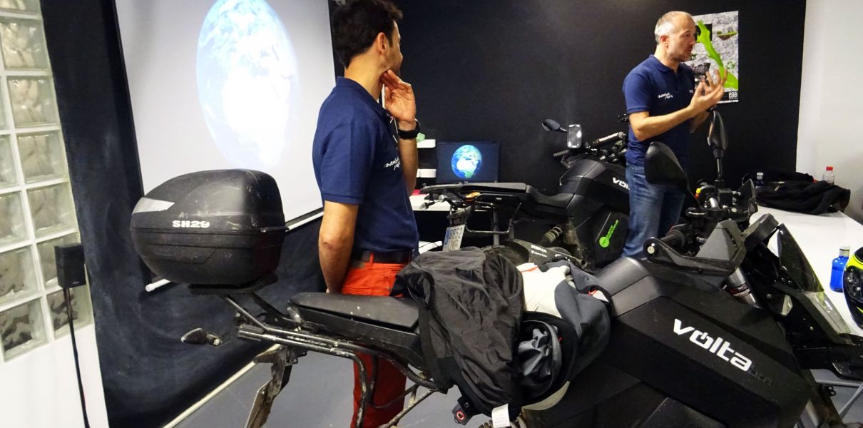 El objetivo de la ANDALUCÍA EVenture es impulsar el conocimiento de las energías límpias en el transporte y acercar a la gente las ventajas de su uso. Durante las 10 etapas que van a recorrer, las emisiones de CO2 de las dos motos Volta que están utilizando serán de 0 gramos.