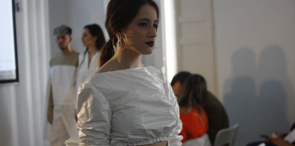 El pasado 28 de enero nuestros estudiantes de tercer curso en el Grado Oficial en Diseño de Moda presentaron sus diseños y colecciones realizados con el plástico suministrado por Distrosur. Concretamente, el material empleado por los futuros diseñadores es polietileno oxodegradable, que empiezan a descomponerse a los ocho meses.