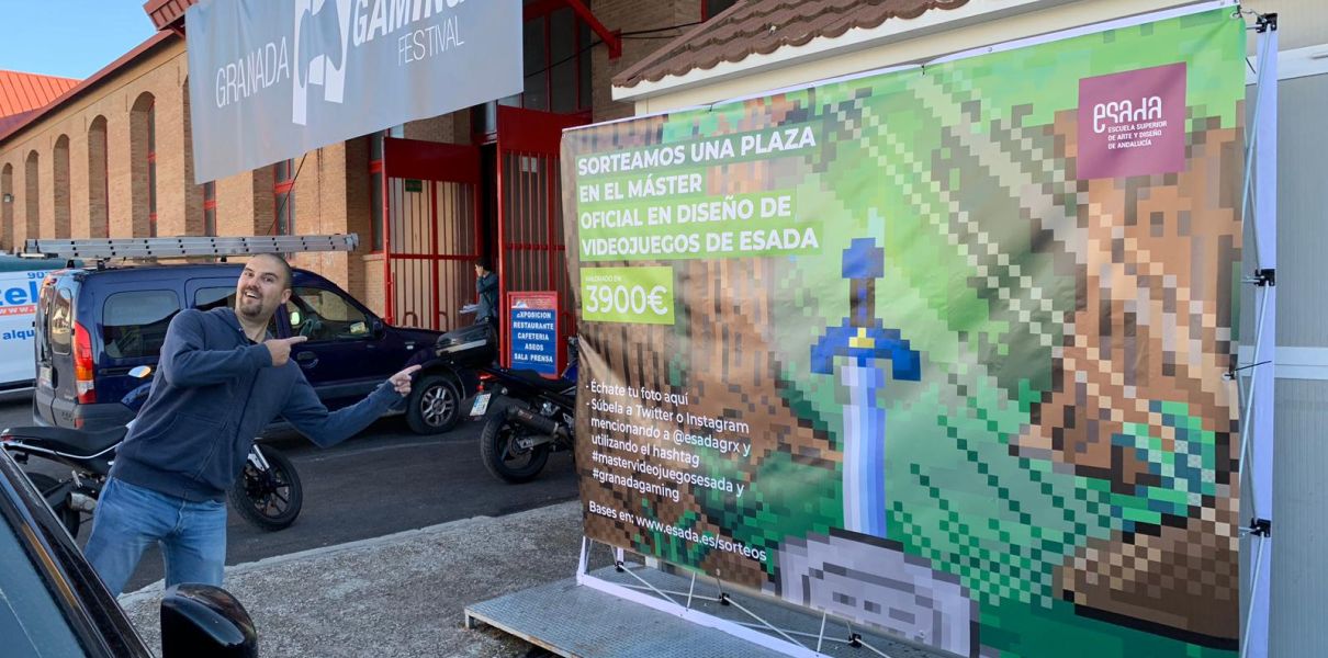 Solo es necesario acercarse hasta la lona instalada al lado de la entrada al Pabellón 1 (Granada Gaming), echarte una foto (como tu prefieras) con nuestra de fondo y subirla a instagram o twitter mencionando a @esadagrx y con los hashtag #mastervideojuegosesada y #granadagaming.