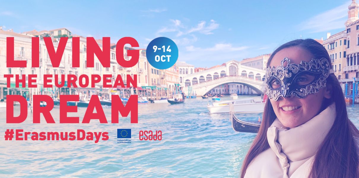 Únete a nosotros en este evento de #ErasmusDays que ha organizado ESADA, "Living the European Dream", para explorar el mundo a través de los ojos y las historias de aquellos que han vivido la aventura Erasmus. Ven y descubre cómo esta experiencia puede enriquecer tu vida académica y personal de maneras que nunca imaginaste. ¡Vive el sueño europeo!